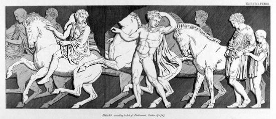En medio de este ambiente, se produjo en Londres un hecho importante. En 1734 un grupo de unos 40 jóvenes, ricos y aristócratas, fundaron en Londres la Society of Dilettanti. Se trataba de una especie club que tenía como finalidad promocionar "el gusto griego y eñl espíritu romano". Con este fin, subvencionaban expediciones a Grecia e Italia, que hacían ellos mismos u otros, arquitectos, arqueólogos o eruditos.