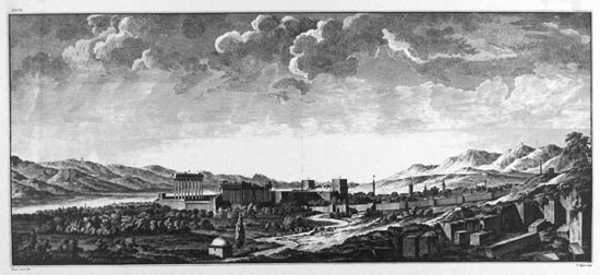 La de Robert Wood fue una expedición a Grecia, Asia Menor y Siria, dirigida por James Dawkins (? -1757, anticuario y rico propietario de una plantación en Jamaica) y John Bouverie (1722 a 1750, arqueólogo diletante). Robert Wood era un "guía" de viajes, un erudito en temas clásicos, con sensibilidad para captar los rasgos característicos de un lugar y una sutil comprensión de las bellezas naturales, que había estado en Constantinopla, diferentes islas del Egeo, Egipto y algunas ciudades de Siria y Mesopotamia. Por esta razón Dawkins y Bouverie le invitaron a ir con ellos. Contaron también con el arquitecto, paisajista y dibujante turinés Giovanni Battista Borra (1712 a 1786). Borra dibujó las ruinas de las ciudades de Palmira (Siria) y Balbec (Líbano), y Wood lo publicó en dos libros, The Ruins of Palmyra, en 1753, y The Ruins of Balbec, en 1757, con los dibujos, grabados de Thomas Mayor y Paul Fourdrinier, y una introducción histórica suya.