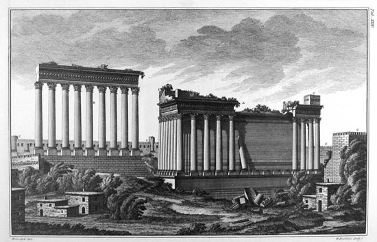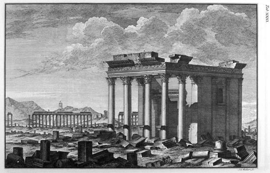 Comparado con el trabajo de Antoine Desgodets (Les édifices antiques de Rome, 1682), aquí ya no se considera el edificio como un monumento autónomo e independiente del entorno en el que se encuentra. Wood comienza con la imagen de la ciudad (la desolación, la ruina,...), en la que se ve la situación que cada pieza tiene en el conjunto y la relacián que cada una tiene con las otras piezas. Esto es reflejo de una sensibilidad por el paisaje, que pertenece a su cultura inglesa.