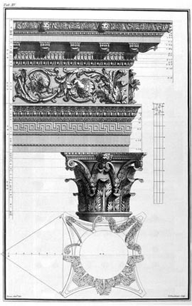 Este es el friso de la cella perimetral, un dibujo espléndido, en el que Stuart, muestra cómo entiende y cómo utiliza las sombras un arquitecto. Superando las prohibiciones absurdas de Jean-Nicolas-Louis Durand y Quatremére de Quincy, aquí las sombras se utilizan para explicar una forma, la estructura de capas de un relieve. Es evidente que la superposición y ocultación de los cuerpos permitía deducir, en gran parte, la profundidad del relieve, pero el recurso mejora la lectura, hace que ésta sea más rápida y resuelve las ambigüedades que, sin embargo, había. No se trata de sombras reales, resultado de una determinada iluminación. Son sombras hechas para diferenciar, básicamente, dos niveles de profundidad. Implica por tanto, una simplificación de la tridimensionalidad real, con el objetivo de mejorar la comprensión del espacio representado.