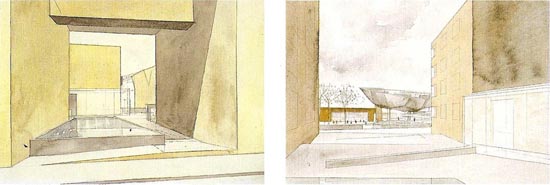 4. Steven Holl, Makuhari: estudios de perspectiva en acuarela del proyecto preliminar
