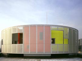 Al final sólo dos cumplieron este propósito: el centro de reuniones o Casa de la Sombra Azul– un pabellón de té de hormigón situado en el patio norte- y la Casa de la Nada –una terraza pública de observación parcialmente cubierta por una pérgola recubierta de cobre y situada en